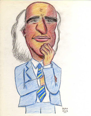 ...EQUIVALE A MENTIR". Ginés G. García (Ministro de Salud) y Miguel de Unamuno, autor de la frase (dibujo para próximo editorial de "Primera Página", marzo 2007).